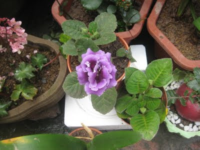 Thế rồi một ngày lại quay lại đó để tìm mầu hoa mới, khổ có mỗi 1 chậu nụ bung mầu hồng, định rước về nhưng em ấy nhìn không khỏe lắm, thế là săm soi một hồi đánh liều rước một chậu mới có nụ bé xíu về với hy vọng nó không phải mầu mình đã có, mầu tím. Thế rồi liền lúc em ấy cho mình luôn 2 bông mầu hồng đẹp mê ly, thích quá chừng luôn vì thấy mình may mắn quá. Vậy là đã có 2 mầu, mà số vốn bỏ ra để có em nó thì không nhiều, vậy là thích.