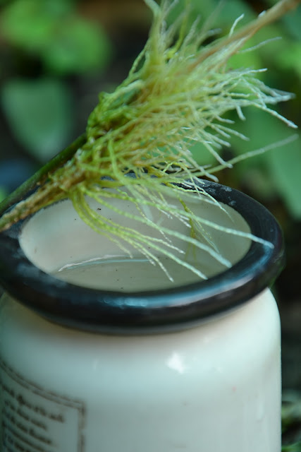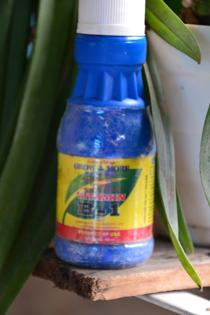 Cành cẩm cù này tớ xin được trong 1 lần lang thang, cành này nhỏ lắm mà khi về tớ họ nhà liều cộng thêm tham lam nữa nên đã cắt luôn thành 2 cành ngắn rồi cắm vào cốc nước có hòa vào đó chút xíu B1 nước.