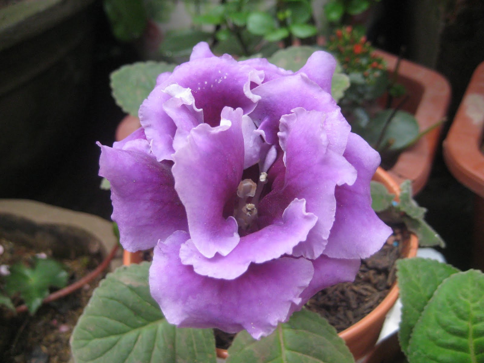 Thế rồi một ngày lại quay lại đó để tìm mầu hoa mới, khổ có mỗi 1 chậu nụ bung mầu hồng, định rước về nhưng em ấy nhìn không khỏe lắm, thế là săm soi một hồi đánh liều rước một chậu mới có nụ bé xíu về với hy vọng nó không phải mầu mình đã có, mầu tím. Thế rồi liền lúc em ấy cho mình luôn 2 bông mầu hồng đẹp mê ly, thích quá chừng luôn vì thấy mình may mắn quá. Vậy là đã có 2 mầu, mà số vốn bỏ ra để có em nó thì không nhiều, vậy là thích.